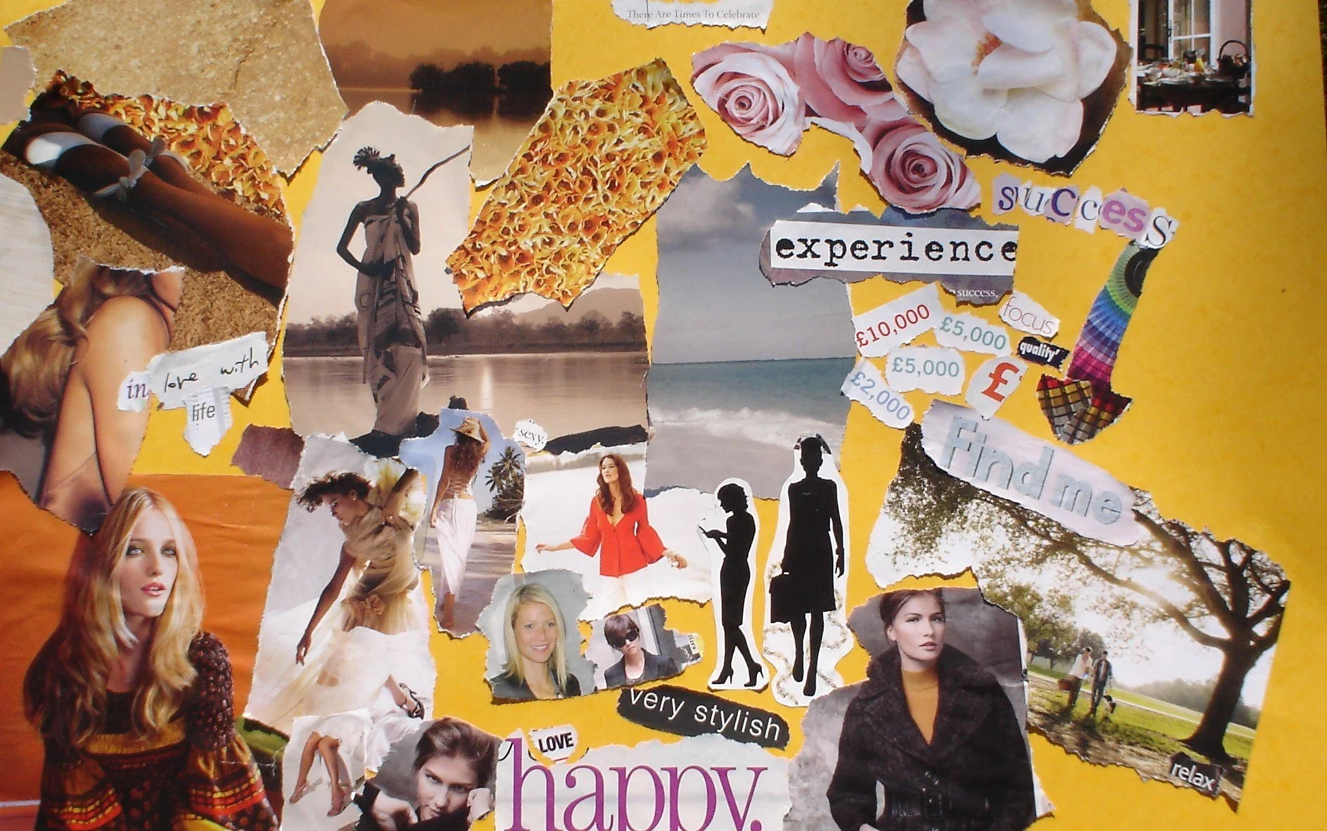 A Mood Board is something that you create to contribute to your happiness. I went through loads of magazines during the workshop and found many pictures and also some words and phrases that I liked. I then looked at the pile of pictures around me and choose particular ones to stick on my Vision Board. Sometimes I choose one based on intuition, without really knowing the reason for having that picture on my board.